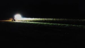 Nein, nur der Maisdrescher, der sich in der Dunkelheit durch das Maisfeld frisst 🙂 Da es am Morgen noch neblig und feucht war und die Sonne sich erst am Nachmittag…